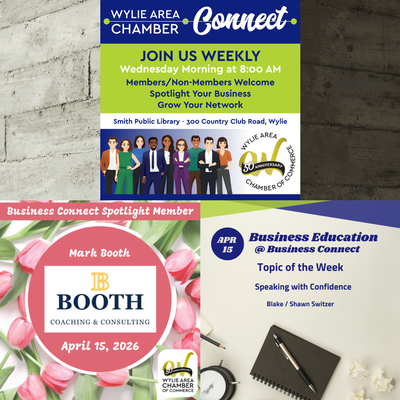 This weekly morning meeting serves as an opportunity to build a network of local contacts, from seasoned experts, to newly minted entrepreneurs. Grab your favorite beverage on the way to the library and be ready to share about your business and network with others. The format of Wylie Area Chamber Connect includes thirty seconds from each guest to introduce themselves, a member spotlight speaker, as well as one-on-one networking.