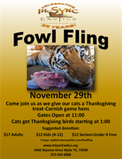 Come see the exotic cats of In-Sync & watch them get their Thanksgiving treats!! It's their favorite event of the year. Cats will get their treats starting at 1:00 PM