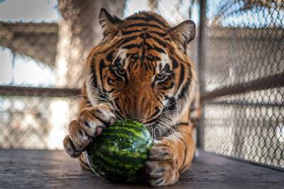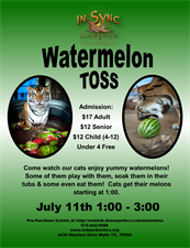 Come join us as we give our cats a yummy summer treat, watermelons!! All the cats react differently, some paly with them, soak them in their tubs & some even eat them.