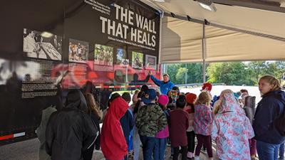 The Wall That Heals exhibit features a 3/4 scale replica of The Wall and a mobile education center designed to travel to communities throughout the country