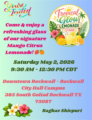 Come out and support Raghav Shivpuri at the Rockwall Chamber Lemonade Day! ??